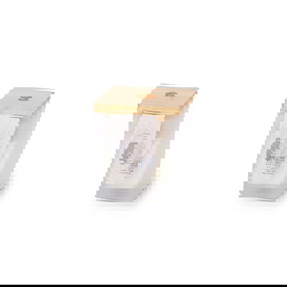 Thoughtful details elevate the experience: FSC-certified whisper wicks offer a gentle, comforting crackle as the candle burns, while the bamboo wooden lid helps preserve the candle’s purity between uses. When lit, the lid can also be used as a coaster, keeping your surface protected during your evening routine or a moment of reflection.