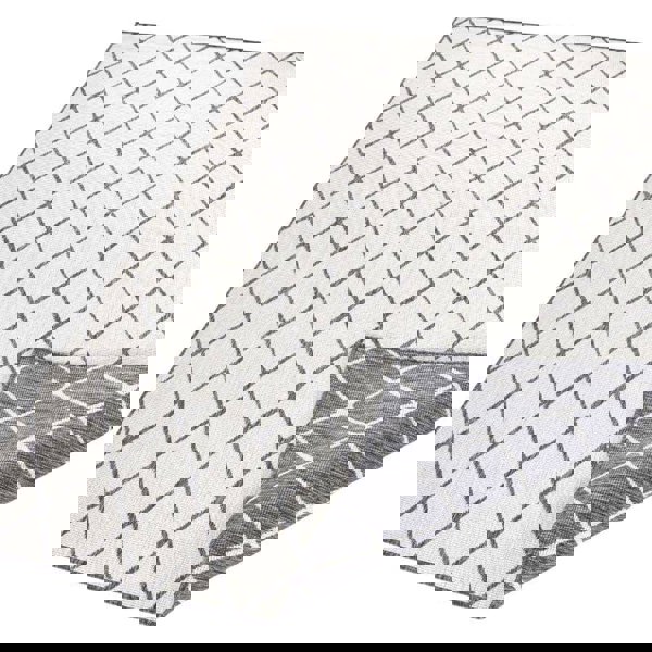 Bring contemporary style and everyday practicality to your space with the Reversible Geometric Rug, a flatweave design suitable for both indoor and outdoor use. Its neutral grey and cream tones make it easy to integrate into modern or minimalist interiors, while the durable polypropylene construction ensures long-lasting performance.