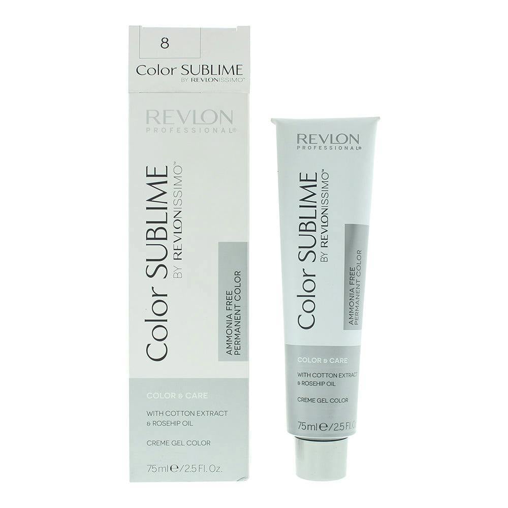 Revlon Color Sublime 8 Light Blonde Hair Colour is a permanent hair colour kit in shade 8 Light Blonde. The formula is enriched with natural-looking colour technology and includes a care conditioner to use after colouring. The kit contains a colourant cream and a developer, with gloves and an instruction leaflet for at-home application.