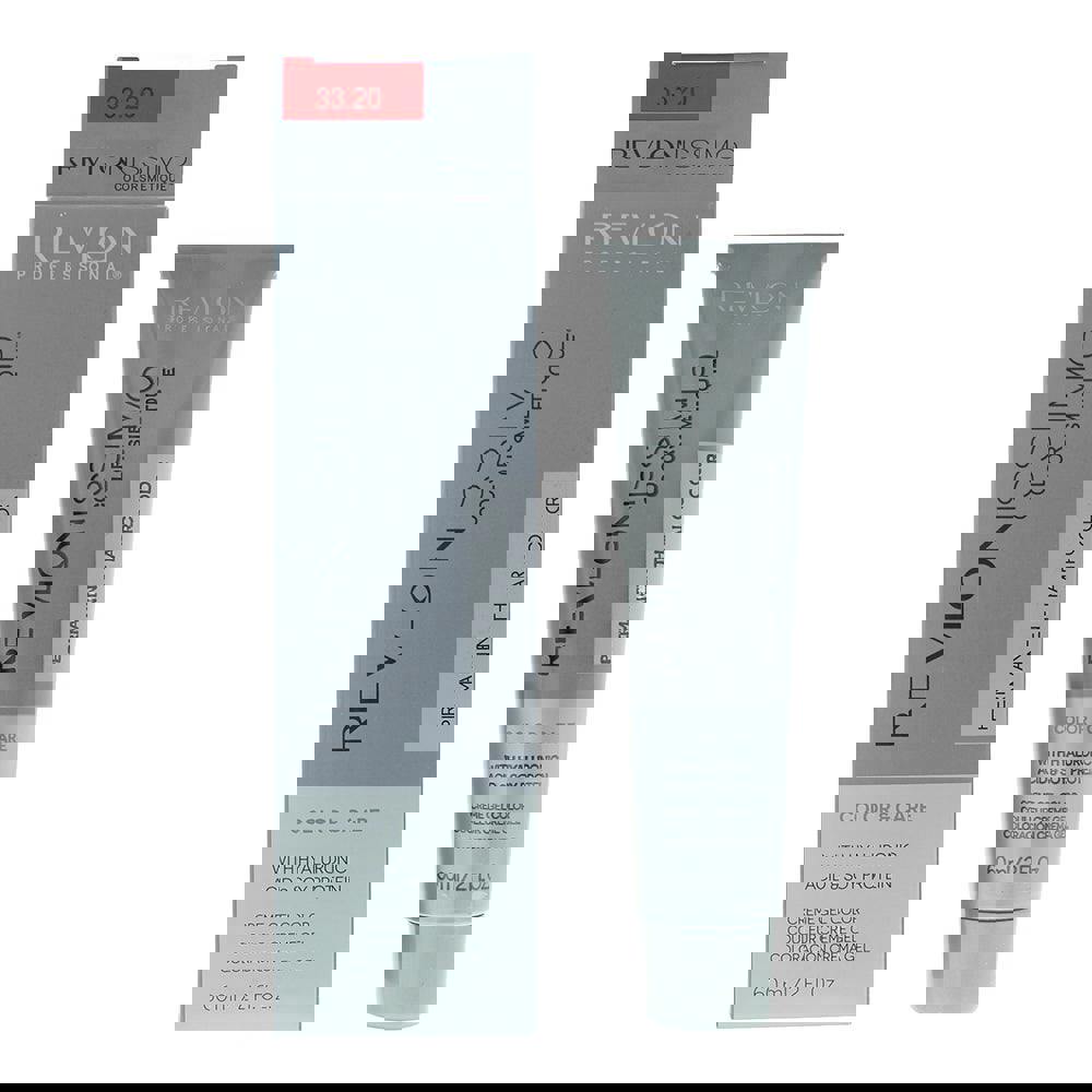 Revlonissimo Colorsmetique 33.20 Intense Dark Burgundy is a permanent hair colour from Revlon Professional. It is part of the Revlonissimo Colorsmetique range and comes in a 60ml size, with the shade name listed as Intense Dark Burgundy.