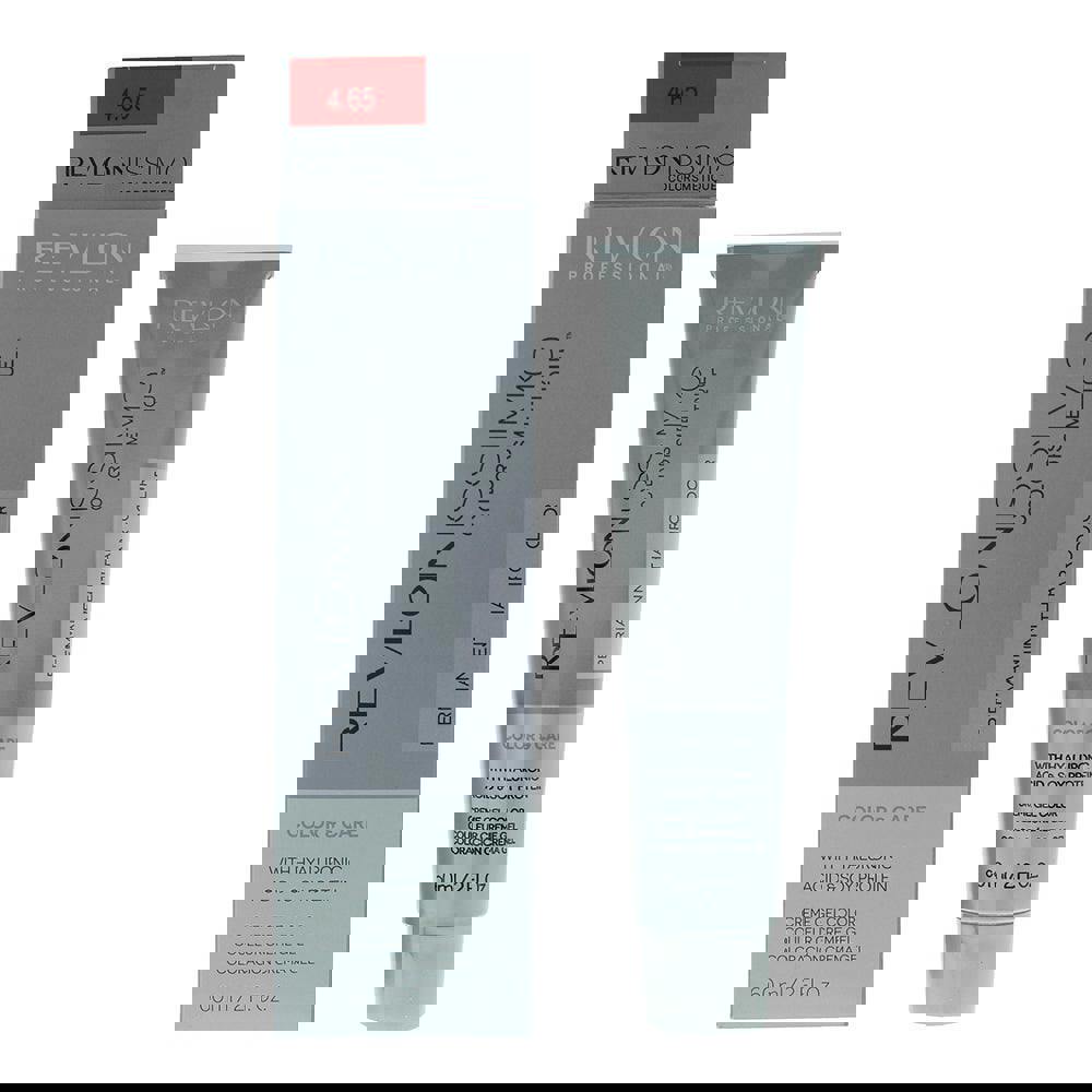 Revlonissimo Colorsmetique 4.65 is a permanent hair colour from Revlon Professional in a medium mahogany red brown shade. The formula is part of the Revlonissimo Colorsmetique range, developed for professional colour services and known for its multi-dimensional tone results and shine-focused finish. This shade is numbered 4.65 and sits within the medium depth level, combining mahogany warmth with red-brown reflect.
