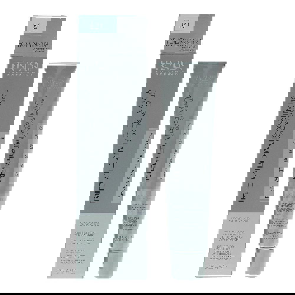 Shade 8.21 is a light blonde with iridescent ash tonal direction, suitable for use as part of professional colour application and mixing systems within the Revlonissimo Colorsmetique portfolio.