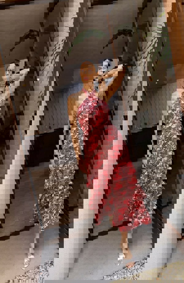 Whether you’re dancing the night away or enjoying a summer celebration, the Jamie Dress will look equally chic paired with flats as with heels. Either cross the halter straps at the front or not for a versatile look.