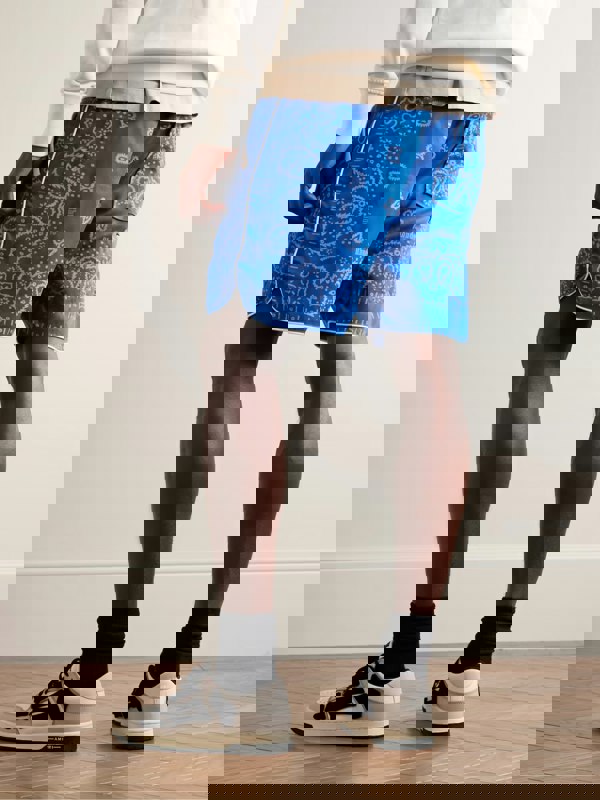 Rhude's shorts are printed with an updated version of the recognisable bandana pattern that incorporates the label's moniker