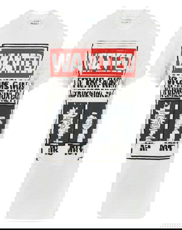 Add some inter-dimensional adventure to your wardrobe with this super awesome officially licensed Rick and Morty Wanted men's t-shirt! Inspired by the hit animated series, the design across the front of the tee sees a large black, white, and red wanted poster featuring the characters, wanted "for crimes against interdimensional space."