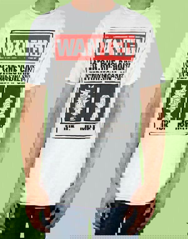 Add some inter-dimensional adventure to your wardrobe with this super awesome officially licensed Rick and Morty Wanted men's t-shirt! Inspired by the hit animated series, the design across the front of the tee sees a large black, white, and red wanted poster featuring the characters, wanted "for crimes against interdimensional space."