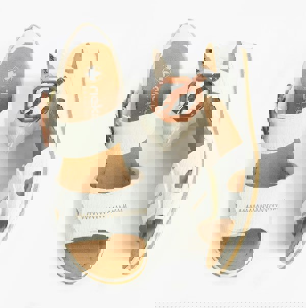 Elegant Rieker women's sandals featuring a trendy white combination design, comfortable fit, and adjustable straps.