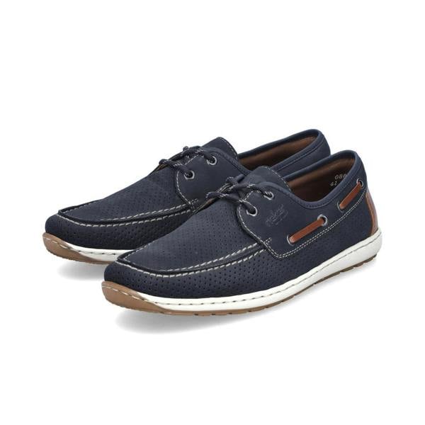 These men's loafers feature leather uppers, textile lining, and rubber soles with a round toe and flat heel, designed for comfort and easy pull-on wear