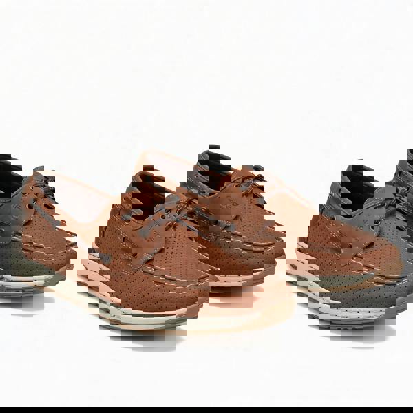 These men's loafers feature leather uppers, textile lining, and rubber soles with a round toe and flat heel, designed for comfort and easy pull-on wear