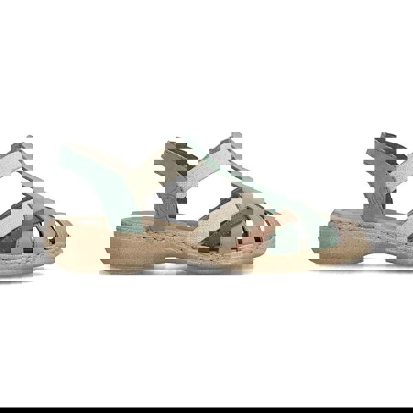 These women's ankle strap sandals feature synthetic uppers, textile linings, a low wedge heel, and a round toe with a pull-on closure for comfortable, regular-width wear
