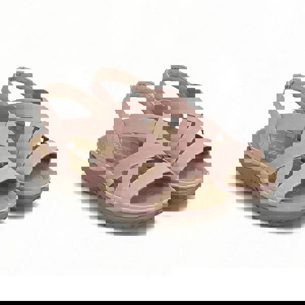 Ankle strap sandals with synthetic upper and lining, EVA sole, round toe, low heel, and pull-on closure. Lightweight and comfortable with regular width, weighing 600g