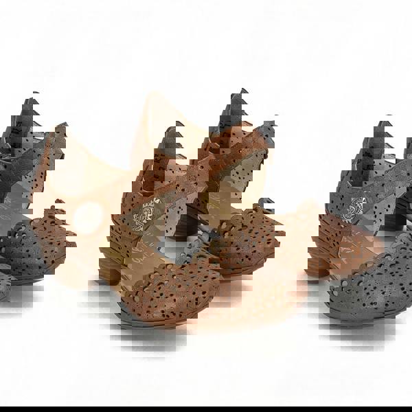 These lightweight ankle strap sandals feature coated leather uppers, synthetic lining, and a medium heel, offering comfort and style for everyday wear