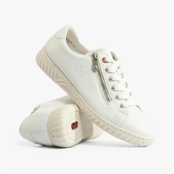 For an understated everyday option, Rieker delivers the N0900-81 women’s shoes in a clean low-top profile. Finished in white, this casual pair is made with a coated leather upper and a round toe for a classic, easy-to-style shape. Lace-up fastening keeps the look neat while allowing an adjustable fit, and the flat heel maintains a low silhouette suited to off-duty dressing.