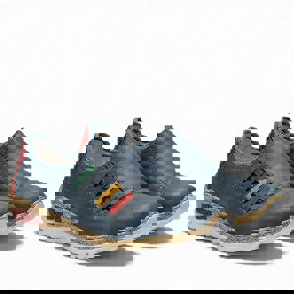 Comfort trainers with leather upper, textile lining, and lightweight RIRICON sole. Features elasticated side panels, stretch laces, round toe, low heel, and low top design