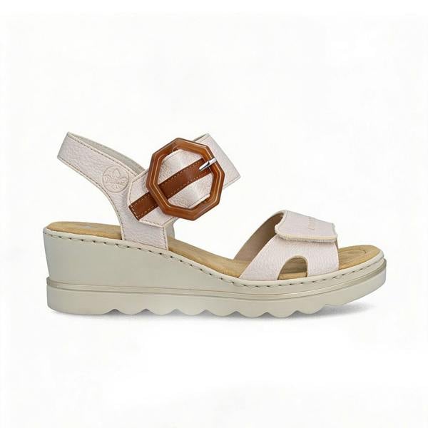 These wedge sandals feature a leather upper, PU sole, open toe, and touch fasten closure with a medium heel height of 5-7. 4cm, offering regular width and lightweight comfort