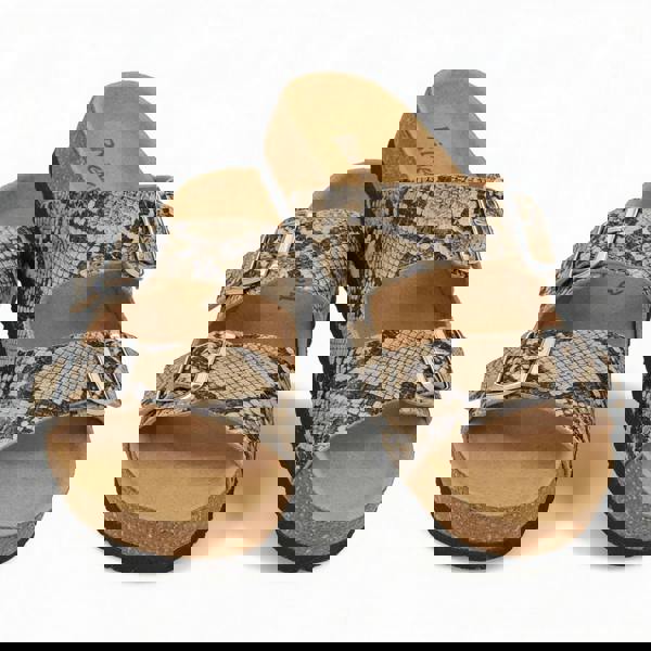 These cross strap sandals feature synthetic leather uppers, synthetic lining, and EVA soles with buckle fastening, low heels, and open toes for comfortable everyday wear