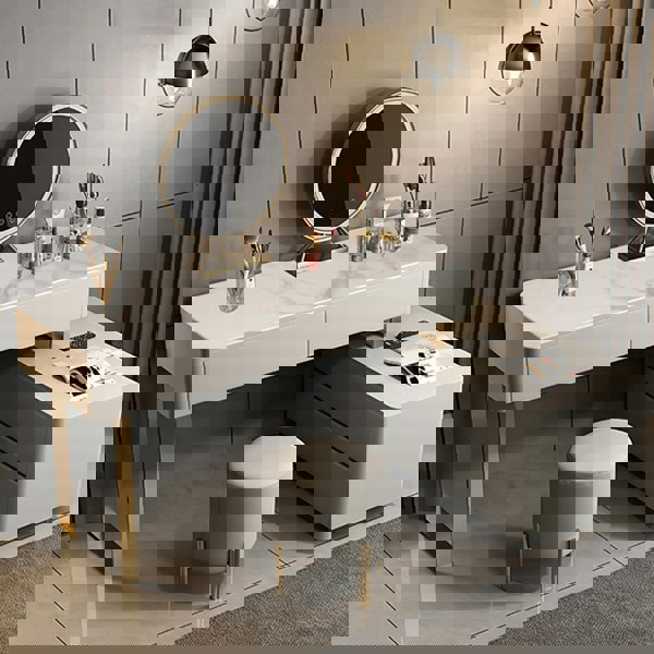 Table: PU leather, MDF, Painted Steel, Sintered Stone