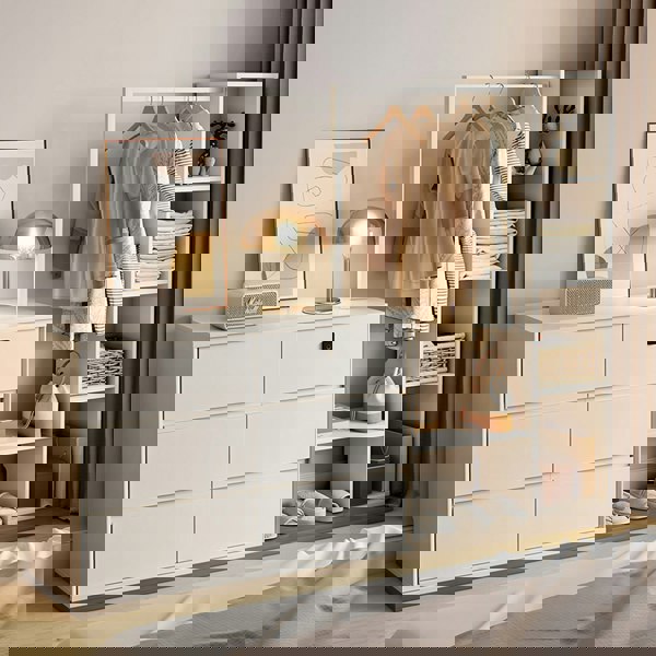 Keep your entryway organized with a coat rack with storage that combines functionality and style. This versatile design features a coat rack with shoe storage, allowing you to neatly hang coats while keeping shoes easily accessible below. Ideal as a coat rack and shoe storage solution, it enhances your space by reducing clutter and adding a touch of elegance to your home.