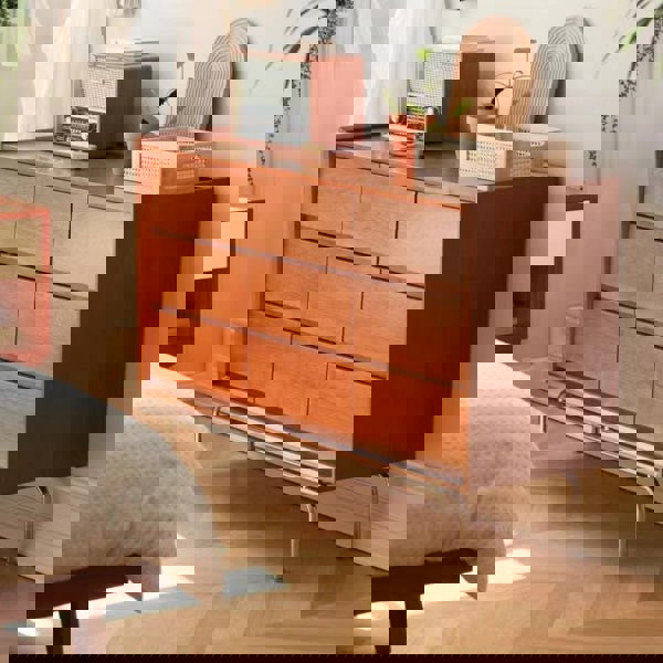 The Sam Drawer Cabinet is a strikingly modern cabinet with a seamless blend of function and style. Constructed from durable pine wood, this piece of furniture adds a warm, natural aesthetic to any room. This pine wood cabinet features multiple compartments, establishing itself as a versatile drawer cabinet for all your storage needs.
