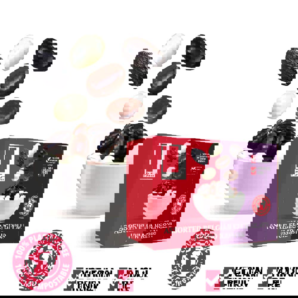 Take luxury with you, with our handy new snack box sized treats. We've packaged up some of our most loved chocolate and savoury coated nuts to create a selection of snack boxes that fit perfectly into your bag. Our Succulent, sun-ripened raisins are bursting with flavour; coated with generous layers of premium dark, milk and white belgian chocolate, to create a truly delicious snack for when hunger strikes. Containing two portions, our snack boxes are eco-friendly and fully compostable and plastic free.