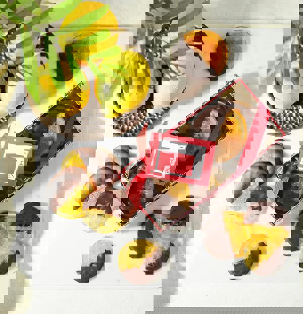 The ultimate mouth-watering pairing of zingy citrus fruits with the finest dark Belgian chocolate comes together in Two Way Chocolate-dipped Orange and Lemon gift box. Our citrus duo contains both juicy orange and tangy lemon slices, dipped in delicious, rich dark Belgian chocolate, making it the perfect indulgent post-dinner treat. These beautiful slices also make a stylish spring cake topper or coffee table centrepiece.