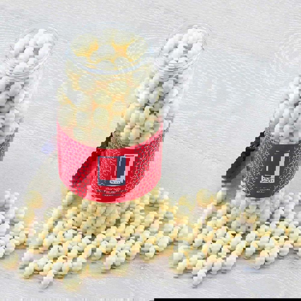 Heavenly sweet and crunchy whole Turkish hazelnuts are encased in a layer of creamy white chocolate for a delightfully well balanced treat. The crispness of the nut, paired with the smooth white chocolate makes for an utterly divine snack that is great after dinner with a coffee or cocktail, or as a hit of sweetness mid-afternoon. Sold in a gourmet gift jar that is both resealable and reusable. This is the most delicious way to let someone know you’re thinking of them.