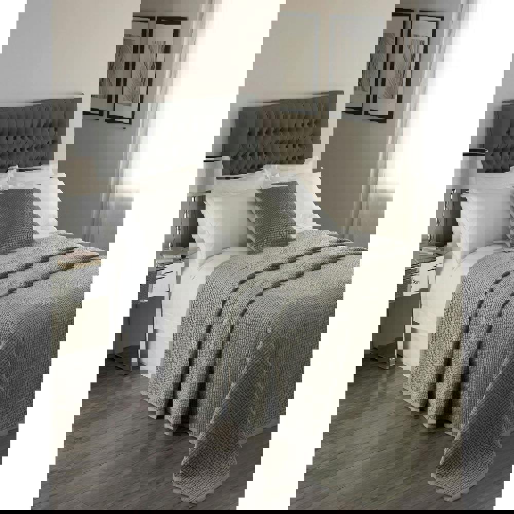 Featuring a delicate quilted design, the velvet-look texture catches the light from different angles for subtle depth. A linen border creates a neat, considered edge, making it an elegant choice for refreshing your bedroom styling while keeping the overall look calm and coordinated.