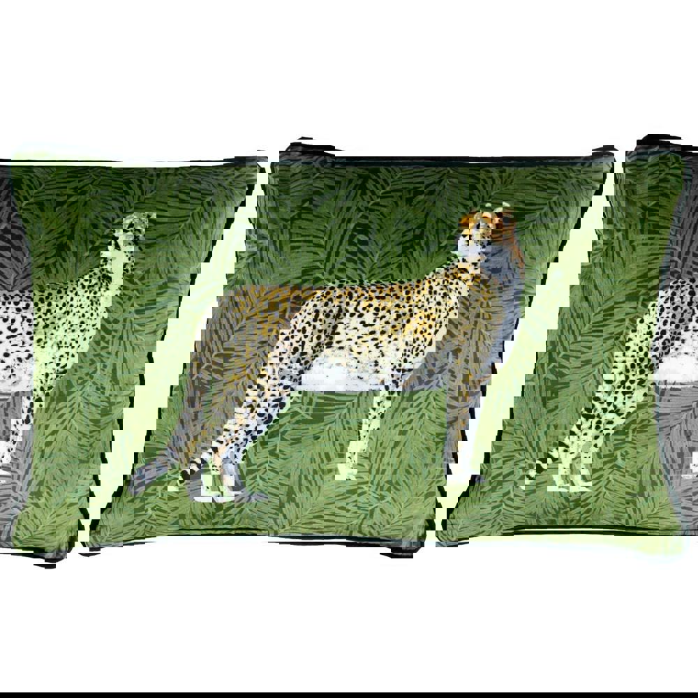 The Riva Home Cheetah Forest Cushion Cover brings a bold, decorative finish to your cushion arrangement. Designed in an opulent green and yellow colourway, it features a cheetah print set against a palm tree jungle background, creating a standout look for sofas, armchairs or beds.