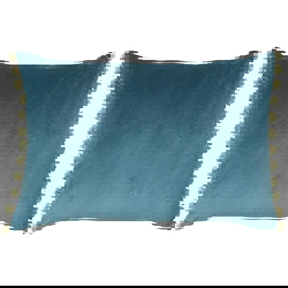 Made with a velvet body, this cushion cover has a soft texture that catches the light from different angles. Contrasting coloured pompoms run along the edges to enhance the playful, tactile design, while a hidden zip closure keeps the overall look clean and uninterrupted.