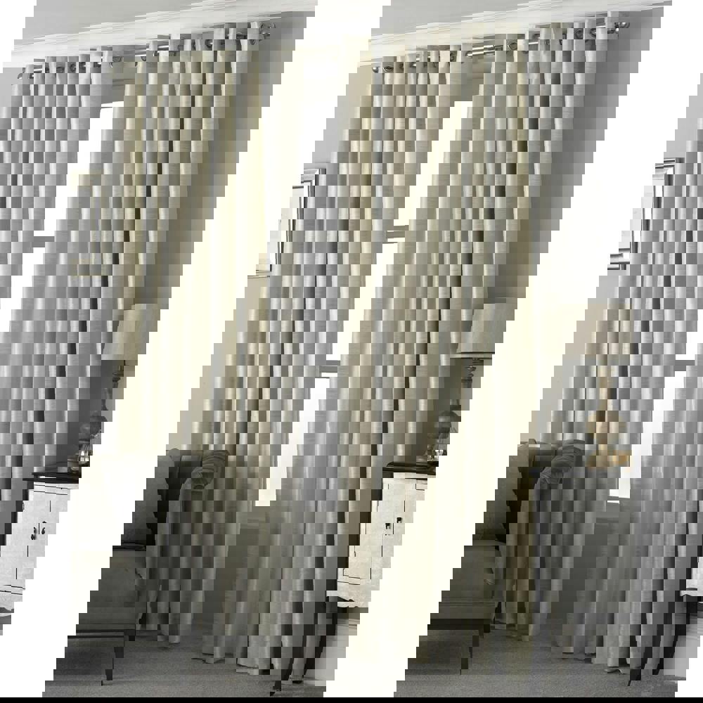 Made from 100% polyester, the curtains are described as thick and hard-wearing, with a drape that falls beautifully. They also offer room-darkening qualities, making them a practical choice for bedrooms where you want a more restful setting. Stainless steel eyelet rings make installation straightforward, with no need for separate hooks or rings.