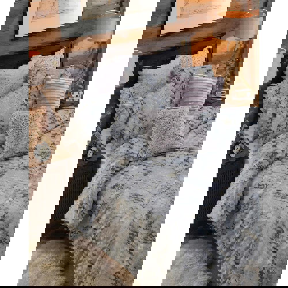 The Riva Home Montana Duvet Set in Silver brings a reversible wolf-fur effect print to your bedroom, flowing through to matching housewife pillowcases for a coordinated look. Designed to suit cosy spaces with wooden features, it offers an easy way to refresh your bedding while keeping the overall style consistent.