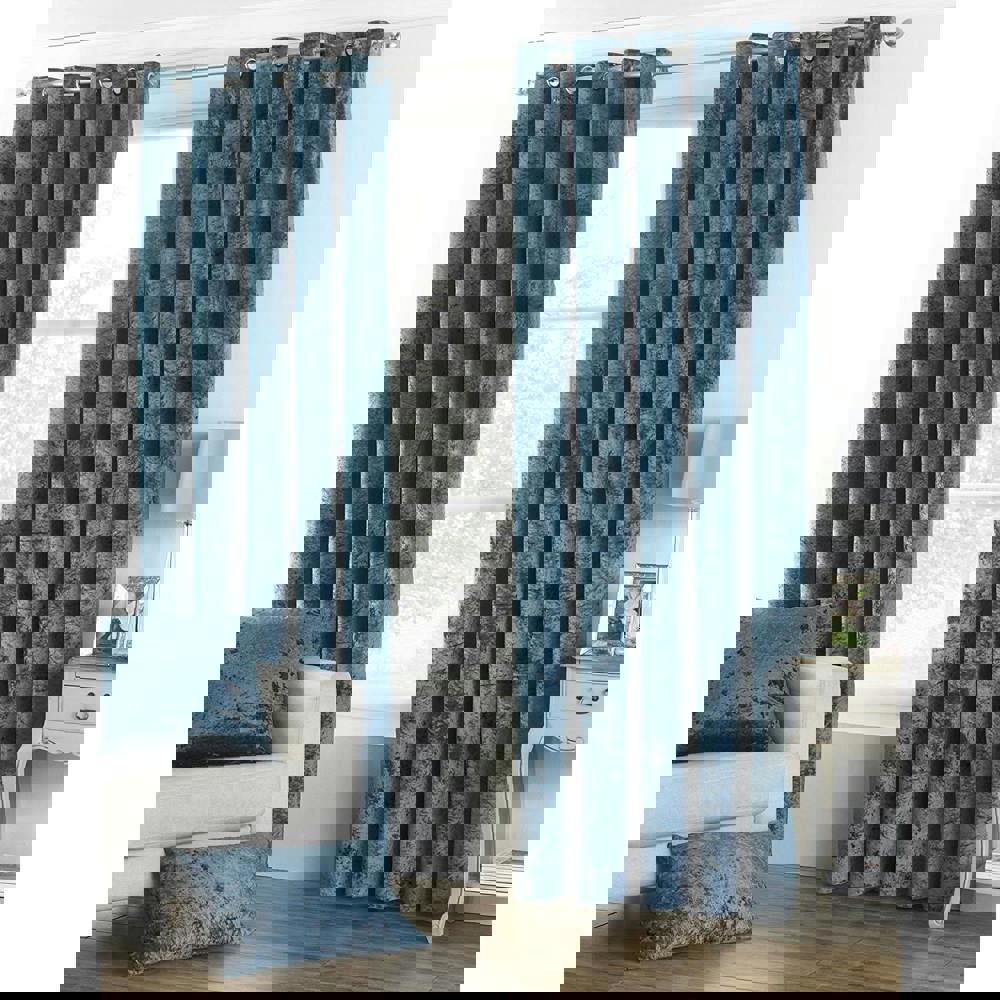 The Riva Home Verona Velvet Style Eyelet Curtains are designed to create a striking focal point in your room, with a crushed velvet-look finish and rich teal colour. The plush, shimmering surface adds depth and interest, making them a simple way to refresh a living space or bedroom.