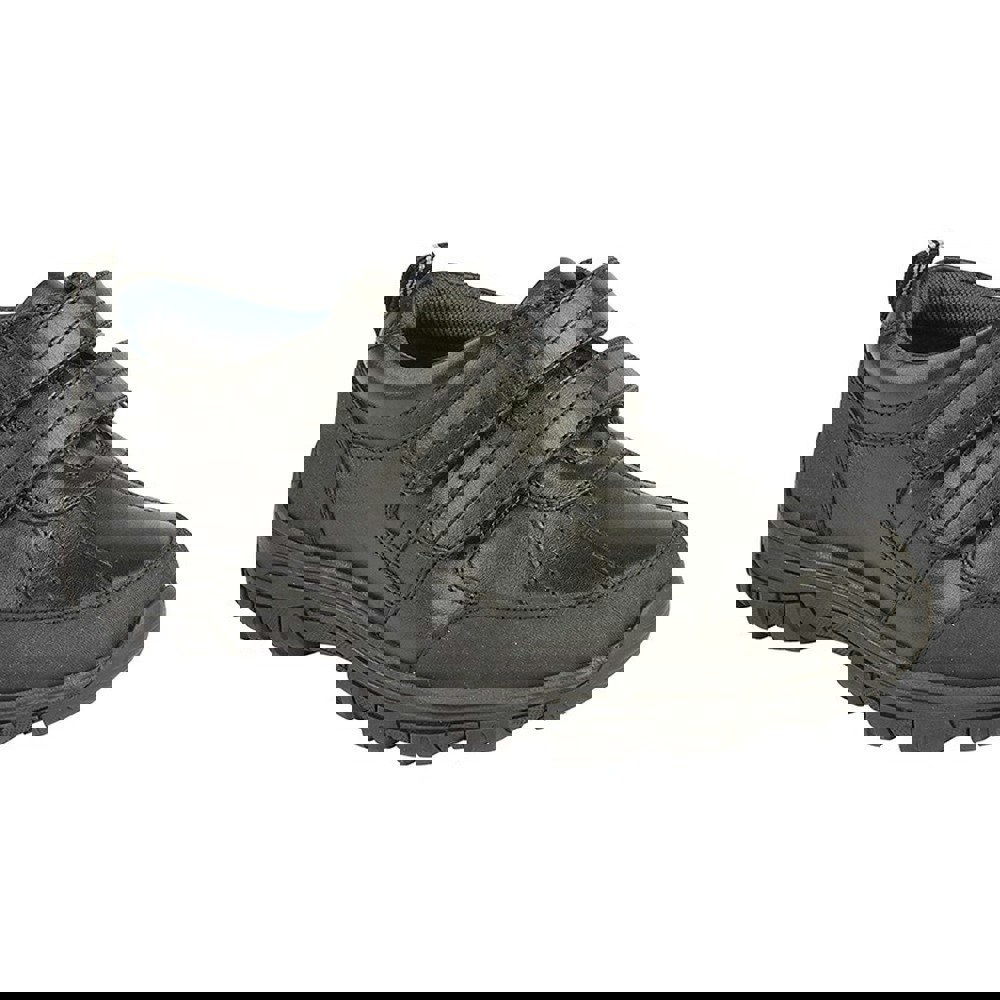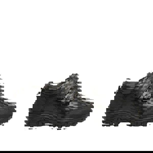 These boys’ leather shoes from Roamers use a twin touch fastening for a secure, adjustable fit. Finished in black, they combine a mesh and textile lining with a high density latex sock for added underfoot comfort. A rubber toe guard adds extra protection at the front, while the TPR sole provides a durable base for everyday wear.