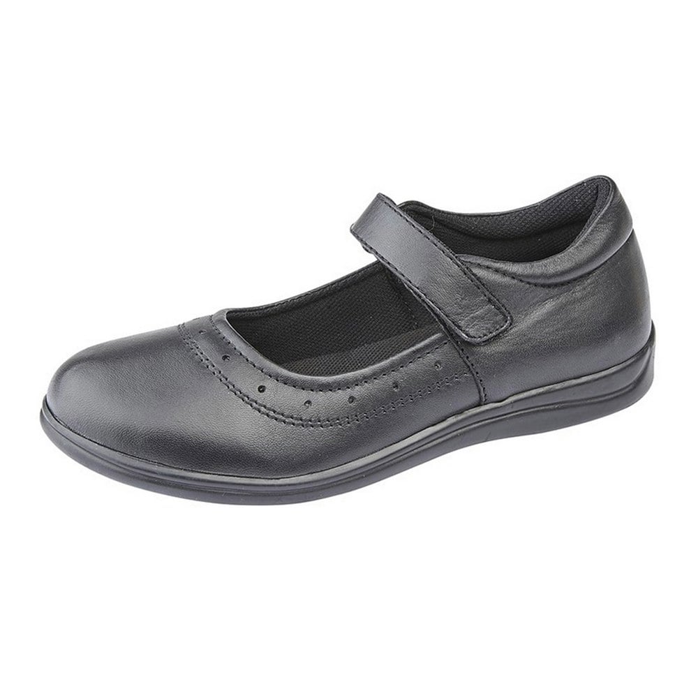 These Roamers children’s girls’ school shoes come in black leather with a touch fastening strap. A latex padded sock adds cushioning, while the mesh lining sits alongside a textile lining for a comfortable interior. Underfoot, the TPR sole is paired with an outsole listed as other.