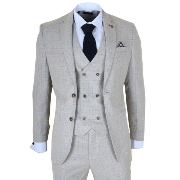 * Complete 3-Piece Ensemble: Includes a single-breasted blazer with jetted pockets, a double-breasted waistcoat, and matching slim-fit trousers, delivering a coordinated and polished appearance