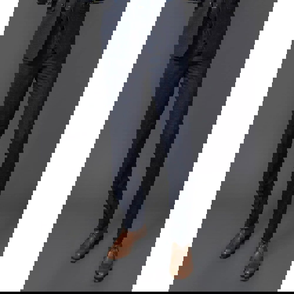 * Elegant Tweed Design: Embrace timeless sophistication with these trousers, featuring a classic navy blue check tweed pattern that adds a touch of elegance to any outfit