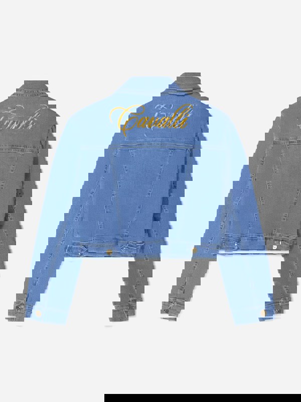 This girls’ denim jacket by Roberto Cavalli brings a classic wardrobe staple into a luxury edit. Made in Italy, it combines a denim finish with a cotton composition. A motif detail adds a distinctive look, keeping the design focused on statement styling.