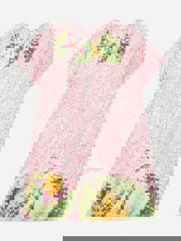 This Roberto Cavalli girls dress arrives in pink silk with an all-over floral print. Made in Italy for SS2025, it brings a refined look to special occasions while keeping the focus on clean lines and a standout pattern.