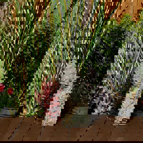 The Robin on Post Statue is a charming garden ornament that features a lifelike robin perched on a rustic, weathered post. The robin is meticulously detailed, showcasing its delicate feathers, expressive eyes, and characteristic red breast, while the surrounding leaves are intricately designed to mimic real foliage with textured veins and edges. Made from durable stone, the post provides a sturdy base, ensuring the statue remains secure in various weather conditions. This delightful piece adds a touch of nature to any garden, making it a perfect focal point for bird lovers and garden enthusiasts alike