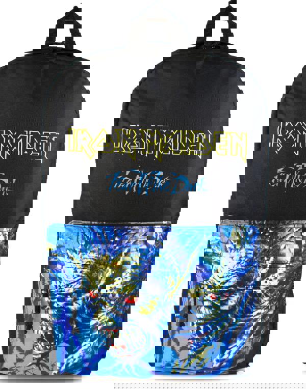 Turn the music up for the English metal band Iron Maiden with our Iron Maiden backpack, perfect for heavy metal music lovers out there! The vibrant black, blue, and yellow rucksack bag comes with two compartments: one spacious main compartment with a divider and one front pocket with an easy-to-use zip, perfect for storing your goodies, everyday essentials, and also awesome for music festivals! The cool Iron Maiden merchandise bag showcases the famous mascot Eddie in a vibrant print seen on the front pocket, headed with the band's logo and fan favorite album 'Fear Of The Dark' in bold, making an awesome gift idea for Iron Maiden fans! Measuring approximately 45x30x15cm and made from 100% polyester, this rucksack is the perfect size for everyday necessities, including books and A4 folders