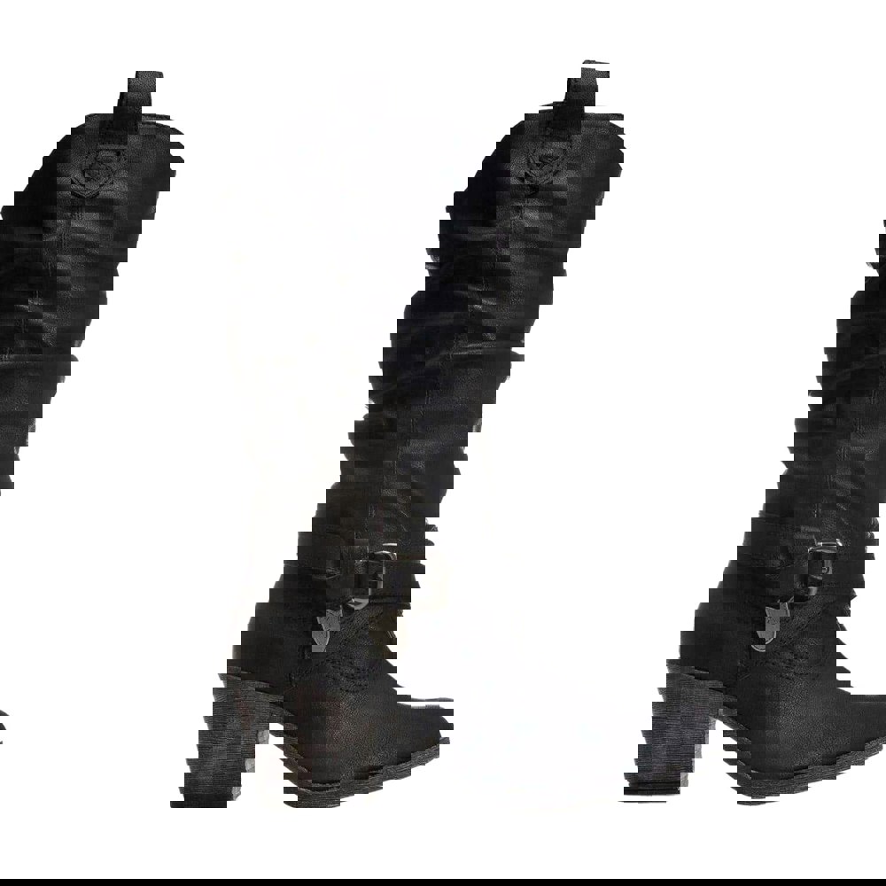 These Rocket Dog Sidestep Lewis boots bring a clean, plain finish to a mid-calf silhouette. The upper is made from faux leather and is paired with a textile lining and a rubber outsole. A slouch leg shape is complemented by a wrap-around strap and buckle detail, with a pull tab to assist when putting them on.