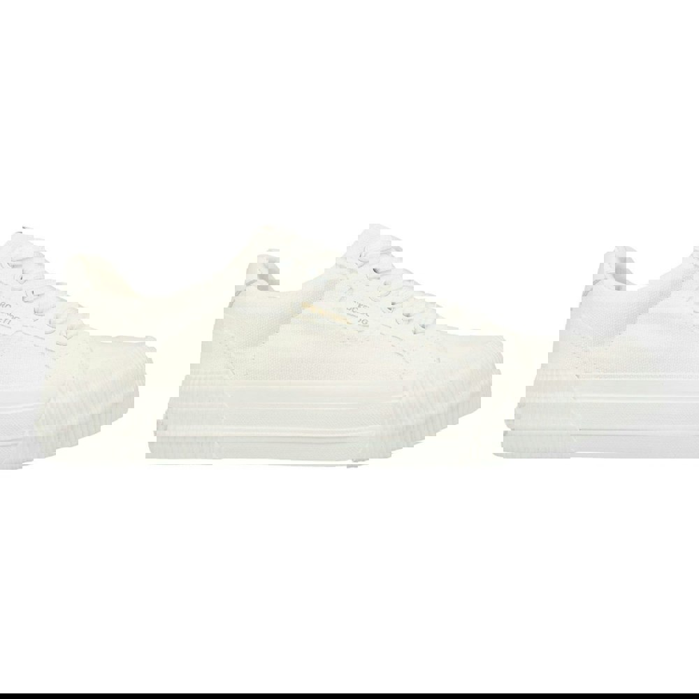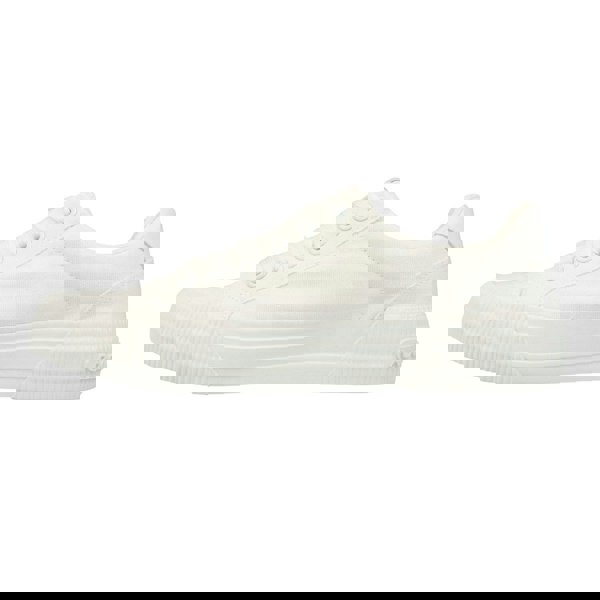 These Rocket Dog Cheery canvas pumps come in white with a round toe and a flat, platform sole. The upper combines cotton canvas and textile, paired with a textile lining for a consistent finish. A logo detail completes the design.