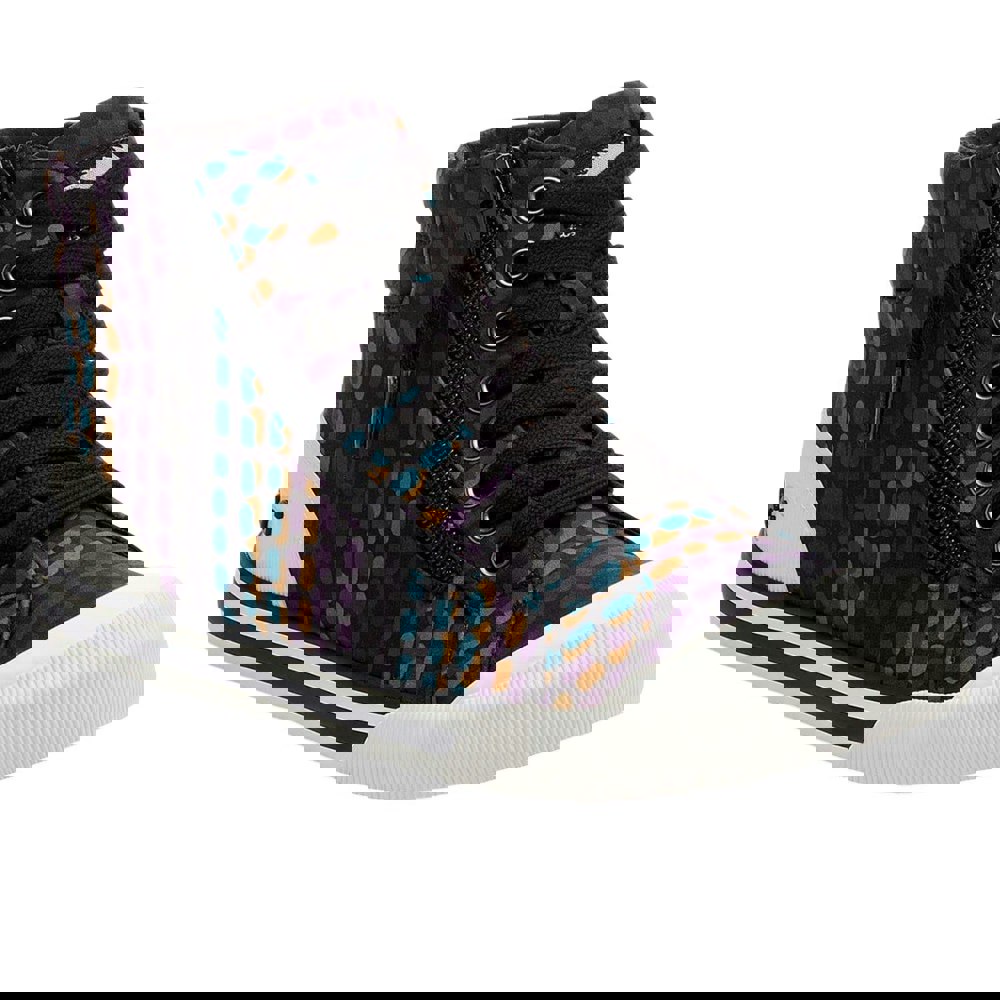 These Rocket Dog Jazzin Hi canvas pumps come in black with an ankle-high cut and a printed design. The upper is made from cotton, paired with a soft cotton jersey lining for a comfortable feel. A plush foam insole adds cushioning underfoot, while the synthetic outsole keeps the finish practical for everyday wear.