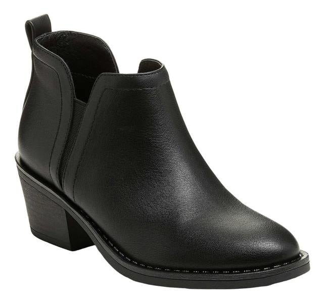 Step up your style game with the Rocket Dog York Boots. This sleek and edgy pull-on boot features a black faux leather upper, a rubber sole with a chunky stacked heel, and a convenient pull-on style with a back pull tab and elastic gore entry. Perfect for adding a touch of sophistication and attitude to any outfit, pair these boots with your favorite jeans or a trendy skirt. Shop now and rock your look with Rocket Dog!