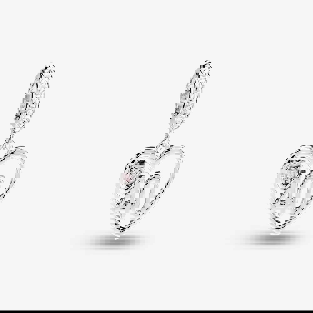 Rosa Lea dangle charm made from sterling silver composed of a love heart with the number 40 and a smaller heart with a pink cubic zirconia set in its centre, perfect for celebrating a significant birthday.
