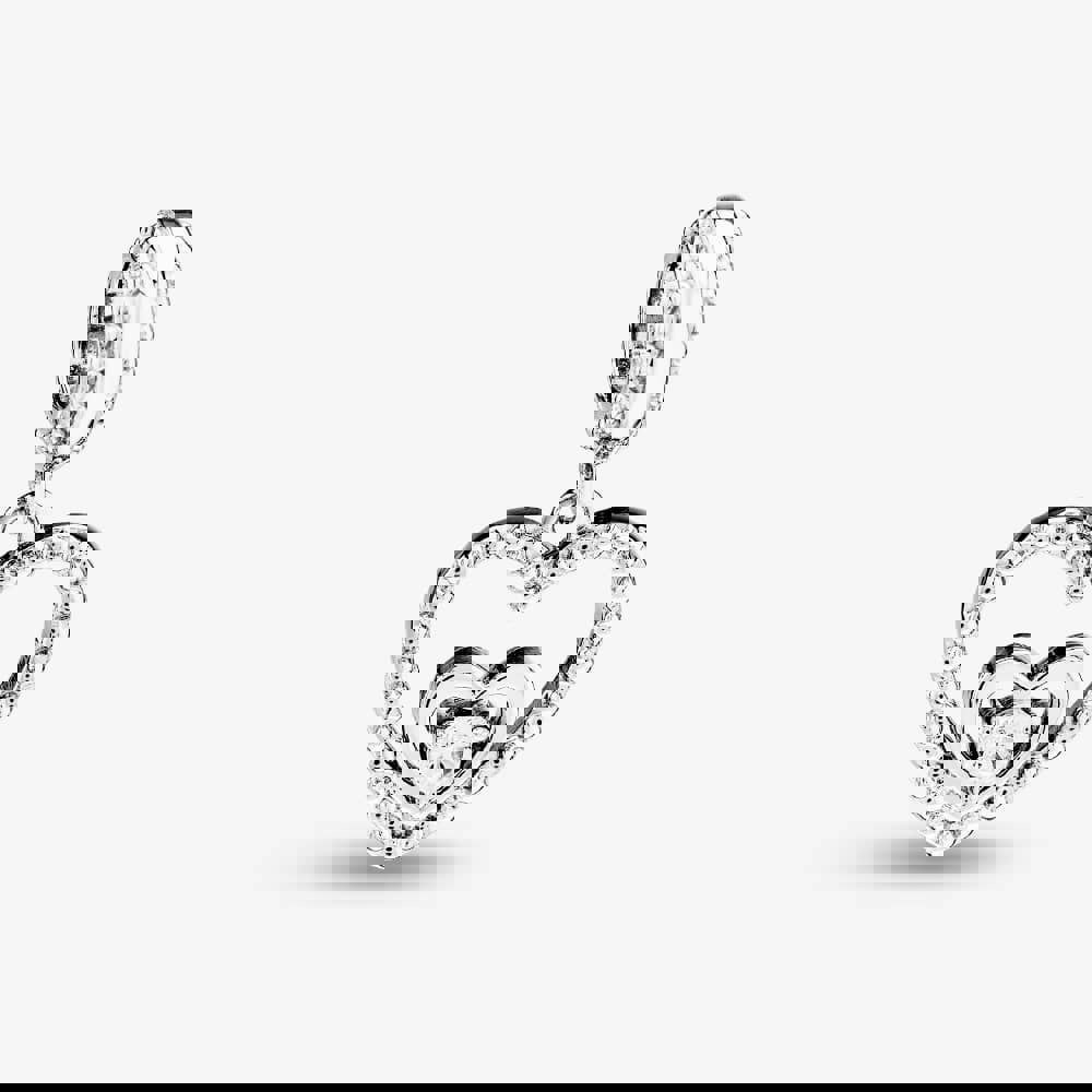 Rosa Lea openwork love heart dangle charm made from sterling silver with a smaller love heart inside and a white cubic zirconia stone set in three claws representing April’s birthstone colour.