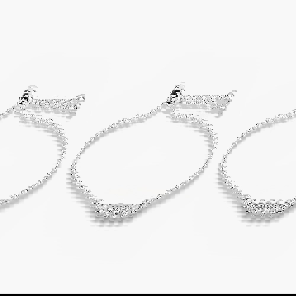 A sparkling Rosa Lea bracelet with an adjustable sliding clasp. The belcher chain bracelet is made from sterling silver and measures 24cm long with 7 graduating barrels each set with a cubic zirconia stone.