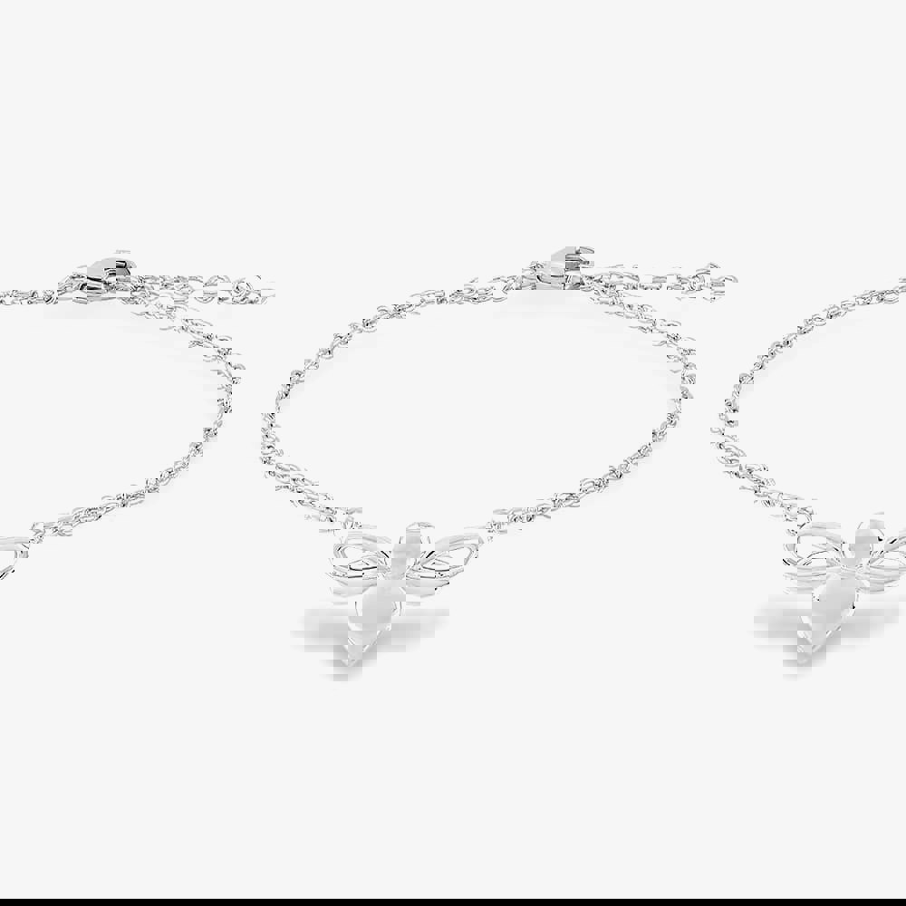 A simple & elegant sterling silver bracelet which features a polished bee shape design crafted on an adjustable trace chain with a lobster clasp fastening . Pair with the matching sterling silver bee necklace & stud earrings to complete the look.