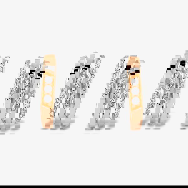 Coiled tightly like a spring, these pretty studs promise energy and excitement. Nine cubic zirconia are geometrically arranged on the front of each piece, utilising rose gold-plating to provide a pleasing juxtaposition of warm and cool tones.