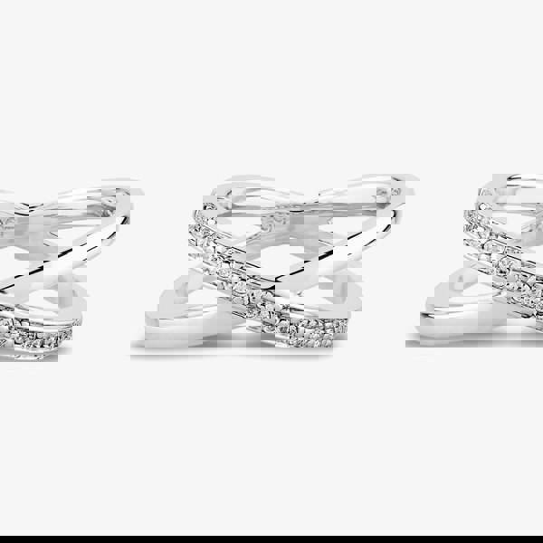Reminiscent of a bridal set, these interlinked rings capture the hope and happiness a bride feels on her wedding day. The 'wedding band' serves as the base of the piece, whilst the larger 'eternity ring' crosses over the top of the band.